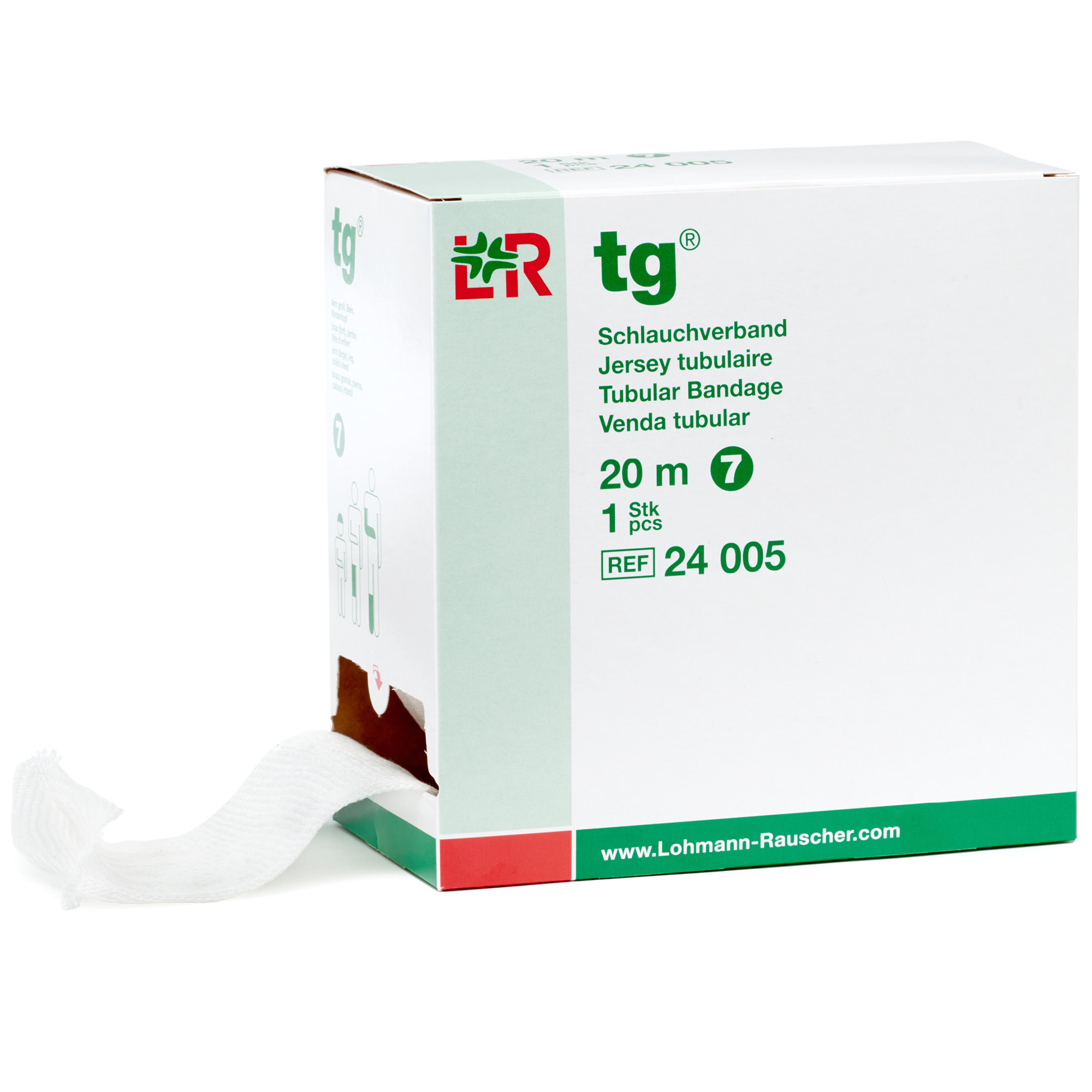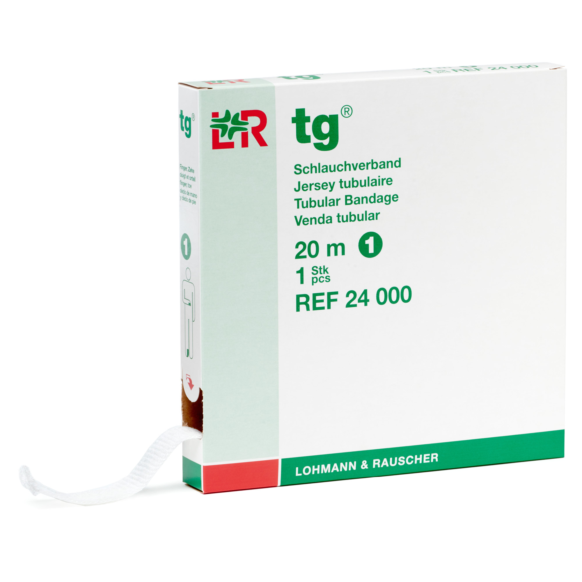 tg Tubular Bandage stretches widthwise approximately four times its original width and by pulling lengthwise can be narrowed down again.