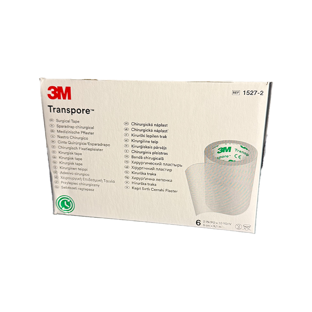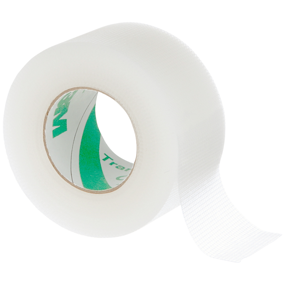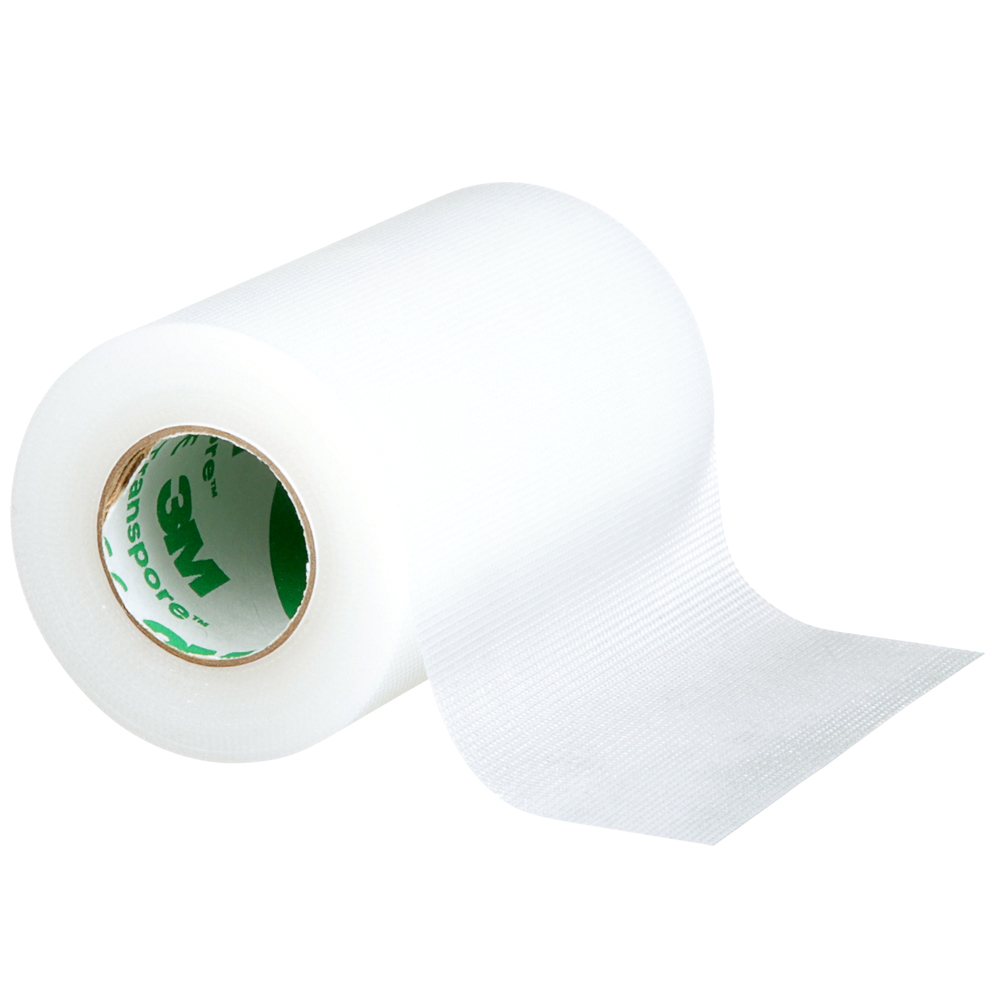 Latex-free, hypoallergenic, gentle tape with an easy bi-directional tear, Transpore tape is very versatile and provides good value. It was designed to combine the best features of Transpore tape with those of Micropore tape. Transpore has good initial and long-term (72 hours) adhesion and it holds well on damp or dry skin.