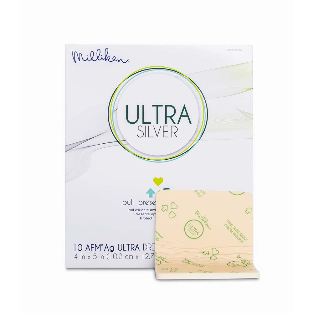 ULTRA Foam dressings utilize a highly absorptive foam coupled with the benefit of Active Fluid Management technology created by Milliken Healthcare Products, LLC. This three part design combines two layers of high performance fabric using a micro-knit process. This creates a powerful moisture transfer mechanism that pulls away and traps excess exudate. The combination of these fabrics keeps the periwound skin dry, the wound bed moist, and harmful exudate away from a healing wound.
