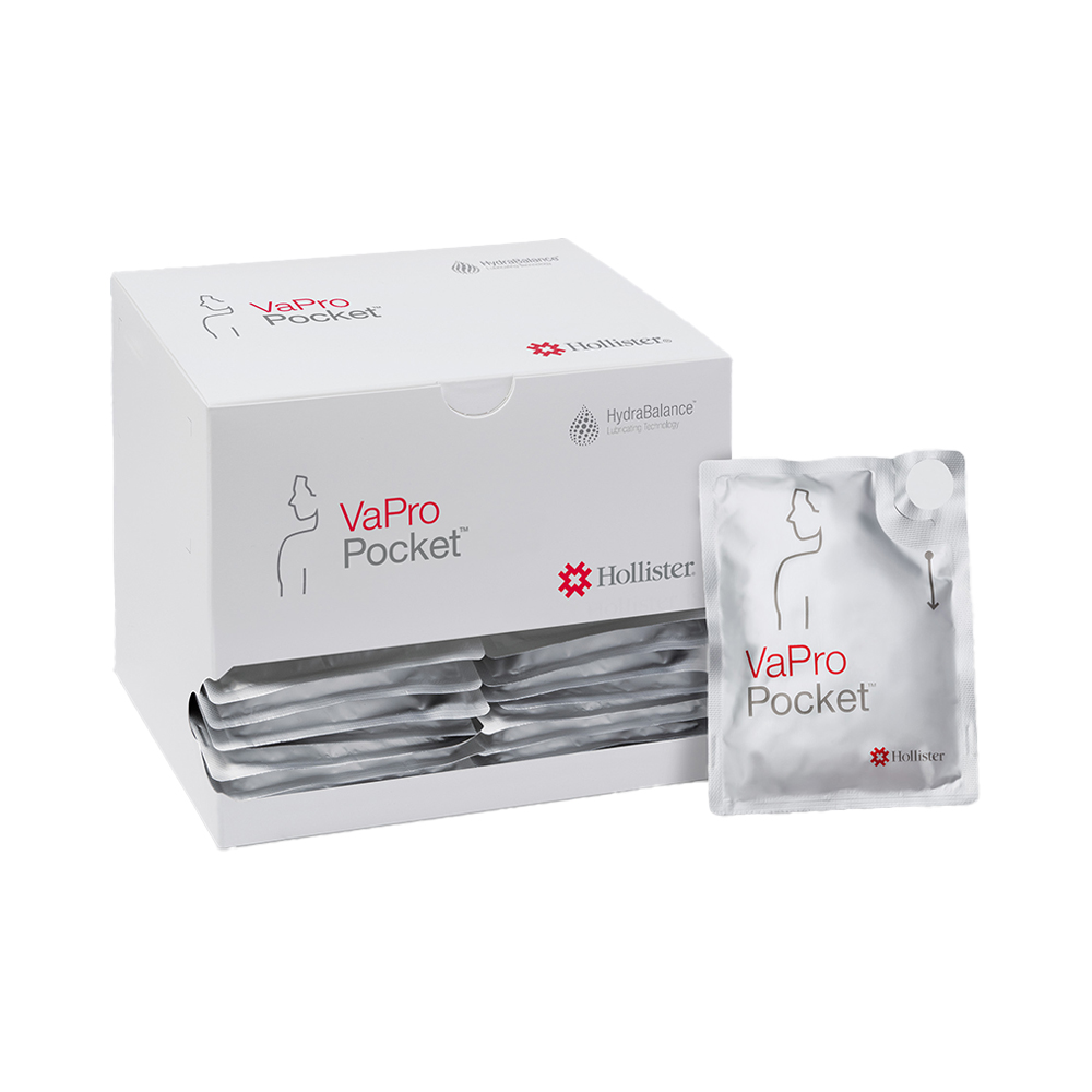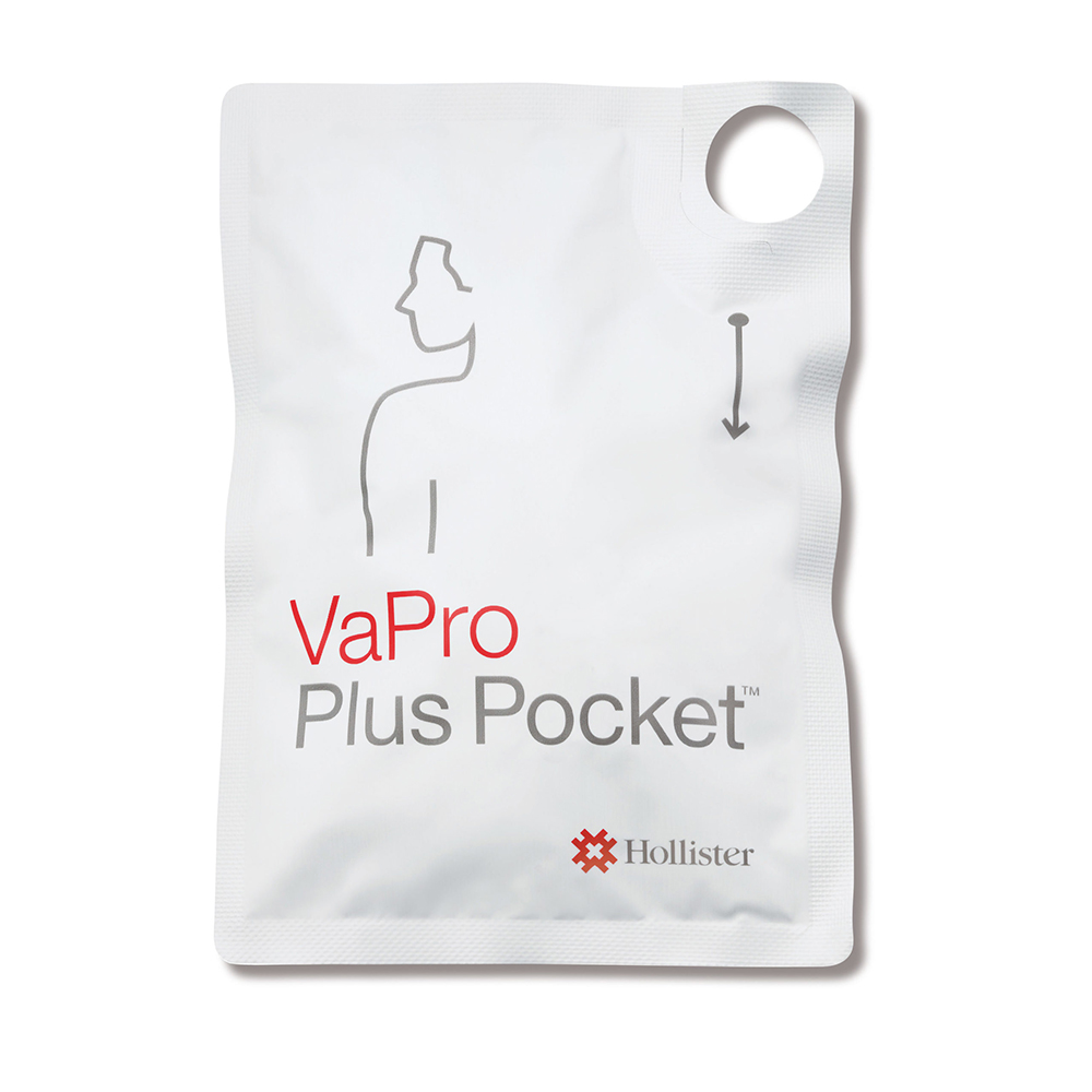 VaPro Plus Pocket catheters provide 100% No Touch Protection with a protective tip and sleeve, and an integrated 1000ml collection bag for catheterization at home or on-the-go. No toilet or receptacle is needed. The collection bag is easy-to-open and easy-to-empty, and includes an anti-reflux valve to prevent backflow of urine. This pocket catheter has a hydrophilic coating, but you don’t have to activate it. It’s 100% ready to use as soon as you take it out of its discreet packaging. The new packaging is easy to open and has a finger hole for easy handling. The VaPro Plus Pocket Catheter also features a protective introducer tip, which is now 50% smaller and more ergonomically shaped. This offers a more comfortable catheter insertion. In addition, it is transparent to aid better visualization. The combination of a protective introducer tip along with the protective sleeve creates a no-touch catheter that’s simple to use.