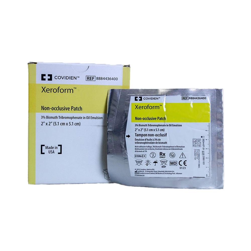 Formulated with 3% Bismuth Tribromophenate, Xeroform Non-Occlusive Gauze Dressings allow for bacteriostatic action while lessening trauma to the wound bed with non-adherent construction.