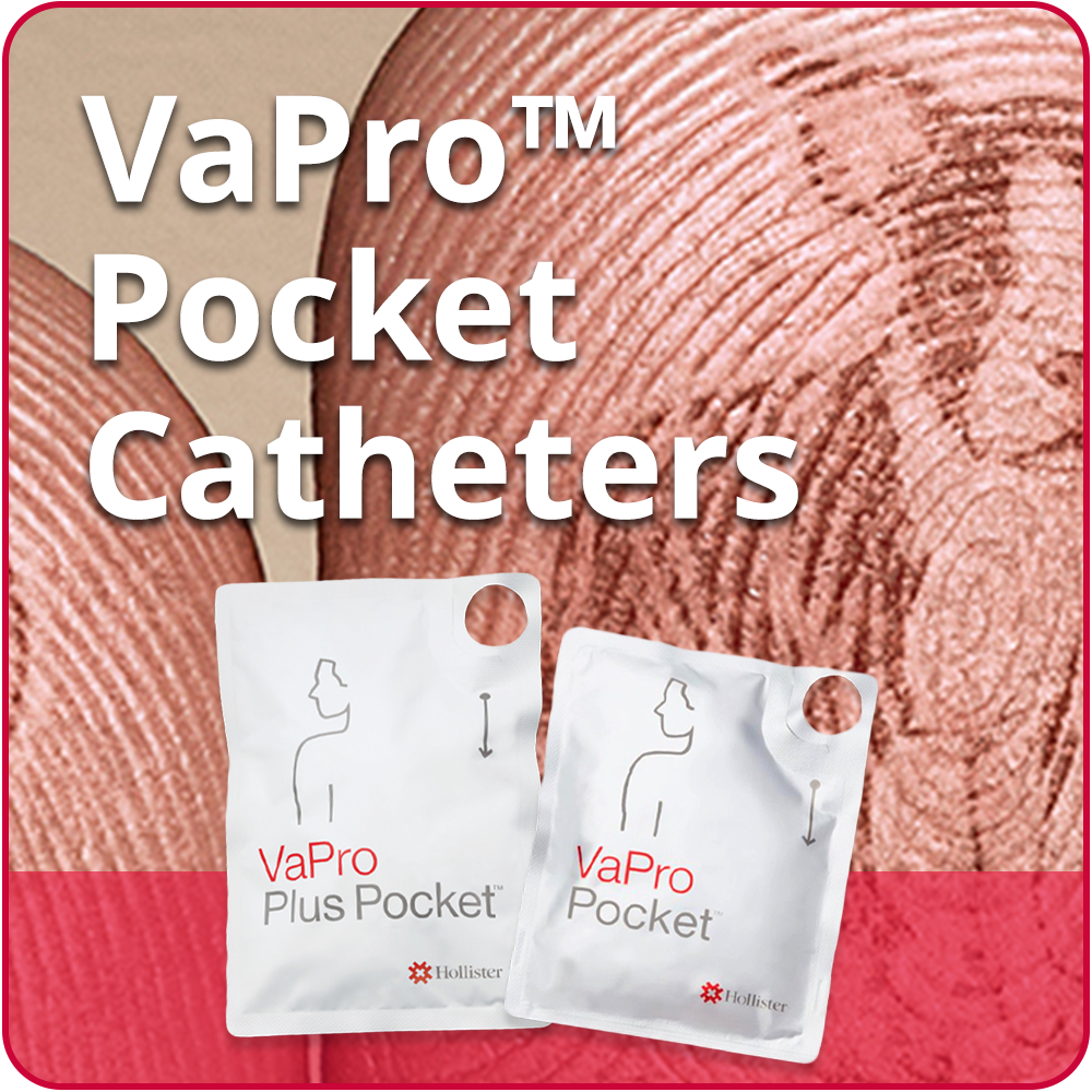 VaPro Plus Pocket™ catheters from Hollister provide 100% No Touch Protection with a protective tip and sleeve. With or without an integrated bag.