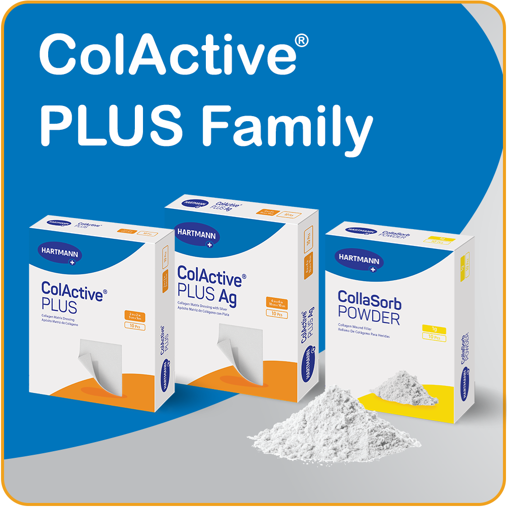 ColActive® Plus collagen wound dressing facilitates natural wound healing, maintains wound pH levels, and lowers excess MMP activity. Available in Ag.